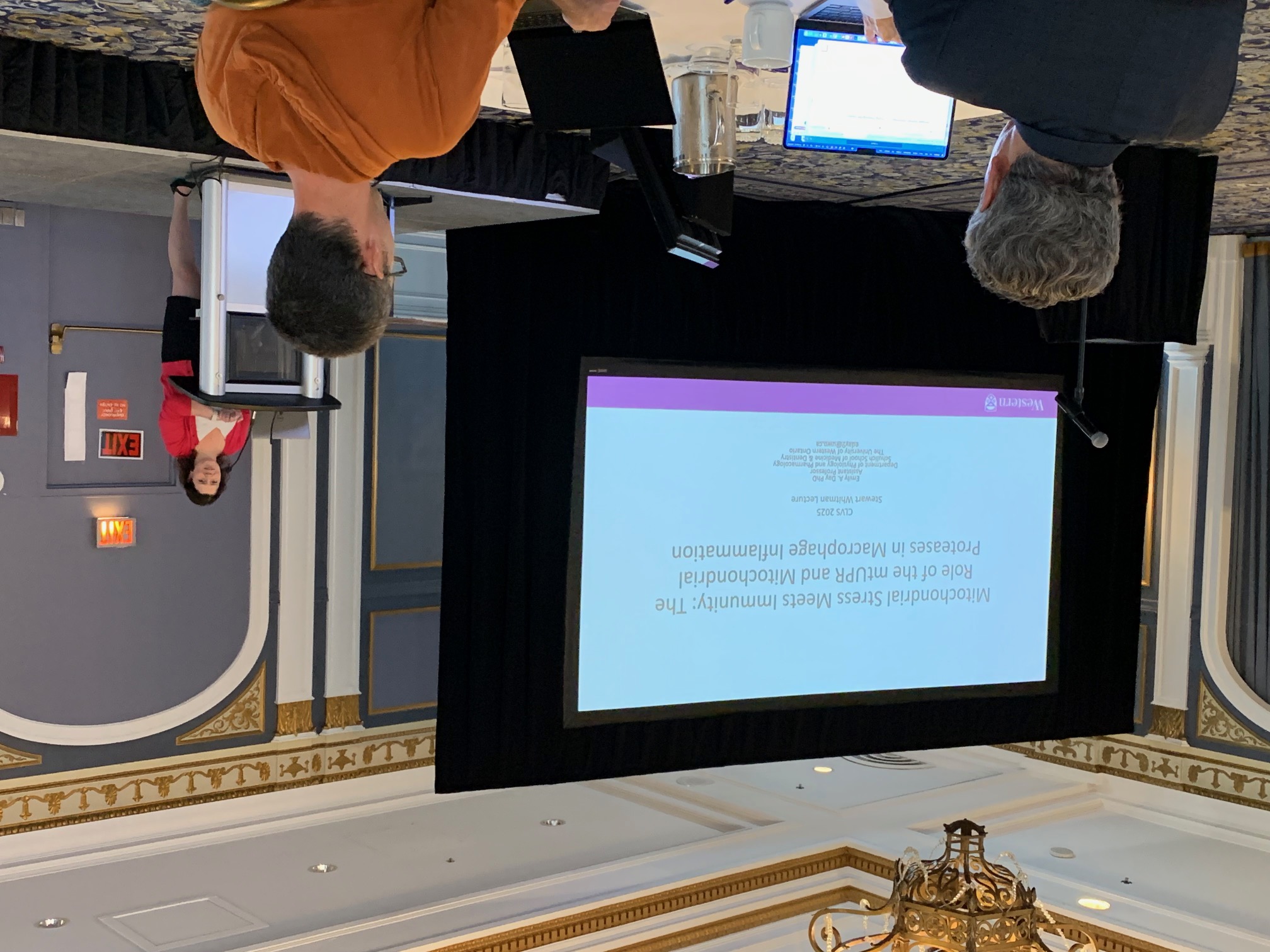Scot Stone (left), Scott Widenmaier (second from right, Changting Xiao (rightmost) and the Best Poster and Best Oral Presentation WinnersCLVS attendeesDr. Gary Lopaschuk Memorial Lecture given by Dr. John Ussher.Stewart Whitman Lecture, given by Dr. Emily DayJean Davignon Lecture, given by Dr. Khosrow Adeli